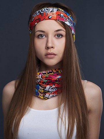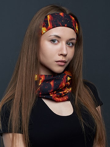 Эластичный бесшовный многофункциональный шарф-бандана (мультибандана) с возможностью индивидуального брендирования предназначен для защиты от неблагоприятных погодных условий: ветра, солнца, холода и пыли. Он занимает в сумке (рюкзаке) минимум места и в одно движение может трансформироваться в шапочку, косынку, пиратку, шейный платок, защитную маску или головную повязку.